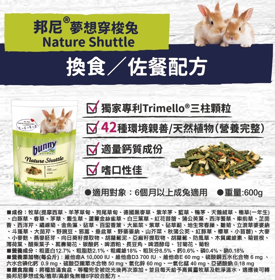 🔺兔子-穿梭配方原廠停產➤銜接品項:2025新配方-成兔-小顆粒三柱顆粒-蔬菜配方(可長期食用)